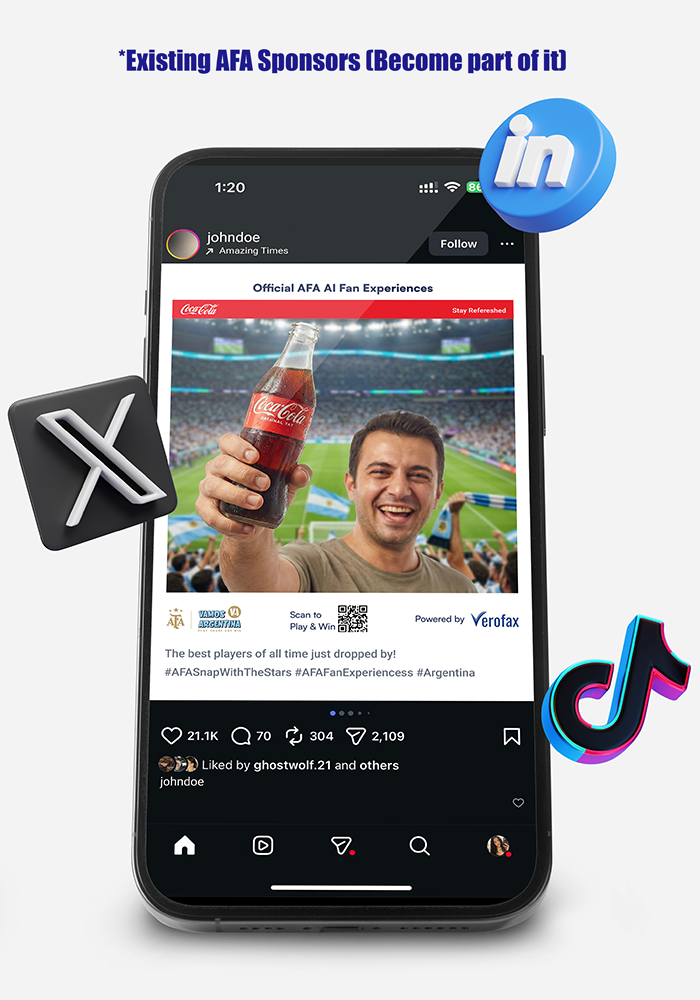 “The partnership with Verofans represents a new chapter for AFA,offering a new way to apply AI to create official experiences with three players chosen by the fan and publish them securely on their social media channels.